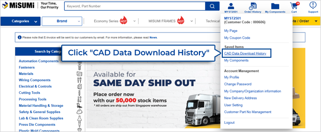 Click on “CAD Data Download History” on the right side panel (under your account details).