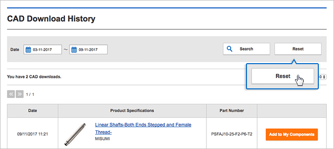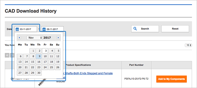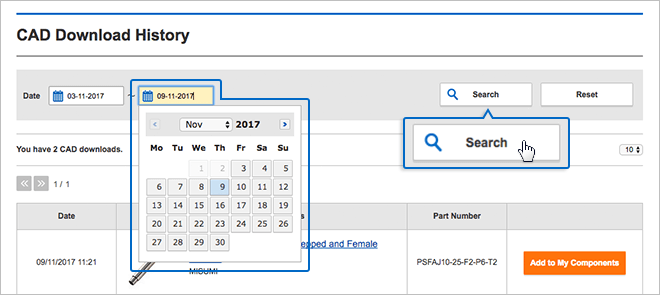 When you click "Search", you will see the CAD Download history for the specified period.