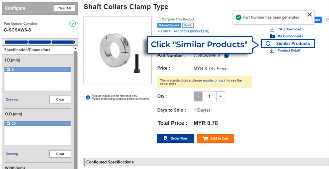 On the product page, you may click on ''Similar products'' to utilize the search function for products similar to what you are looking for.