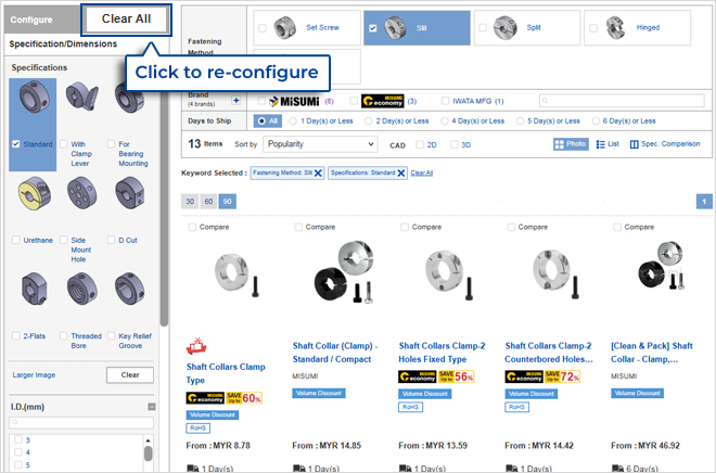 Select the category/specifications of the product you need from the list and click 'OK'.