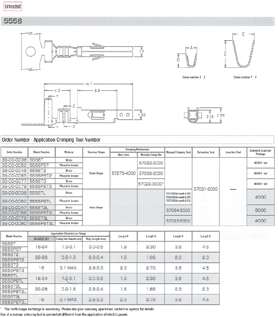 | Applicable size AWG | 18–24 / 18-24 | Mating Partner | 5558, 5566, 5569 |
